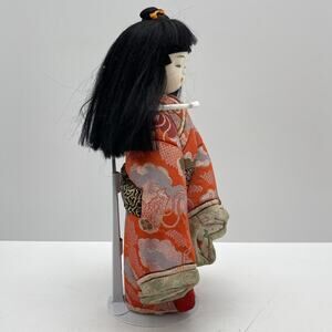 Vintage Gofun Japanese Ichimatsu Girl Doll Black Hair Silk Kimono Ningyo 11.5"