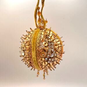 Vintage Gold 3 Inch Handmade Ornament Sequin Beaded Push Pin Jewelry Christmas