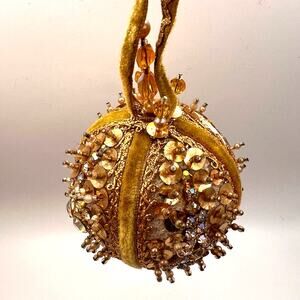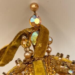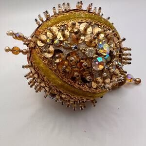 Vintage Handmade Gold 3 Inch Ornament Sequin Beaded Push Pin Jewelry Christmas