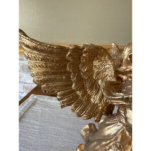 trike up the heavenly music! 🎶 This vintage angel figurine is dressed in flowing gold robes, strumming her lute like she’s headlining the holiday symphony. With gorgeous wings, hand-painted features, and plenty of shimmer, she’s the perfect mix of divine and dramatic.