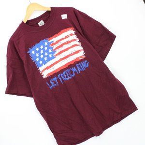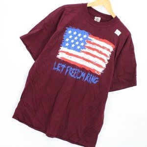 Vintage Gold Basicss Label T-Shirt Men's Burgundy Big USA Flag Graphic XL 90's