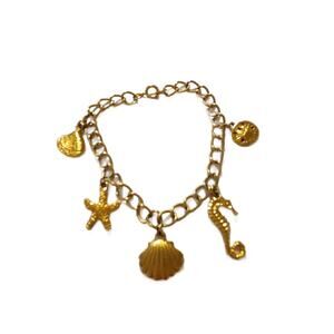 Vintage Gold Beach Theme Charm Bracelet, SeaShell, Seahorse, Sand Dollar, Starfish