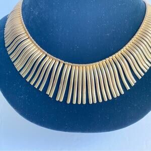 Vintage Gold Tone Fringe Bib Necklace Etruscan Tribal Cleopatra Style Indian India Tanjore 21”