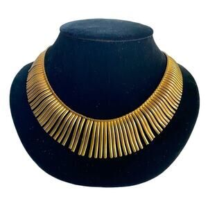 Vintage Gold Bib Necklace Etruscan Tribal Cleopatra Style Indian Tanjore 21”