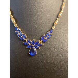 Vintage Gold & Blue Crystal Necklace With Adjustable Chain