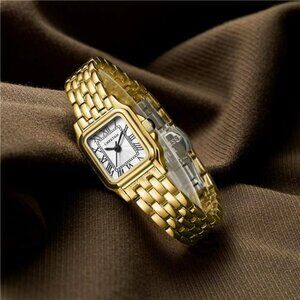 VINTAGE GOLD BRACELET: This petite gold watch designed to be compact and suitable for women, characterized by a smaller case size and a gold-tone finish, providing a dainty and vintage look, best gift choice
