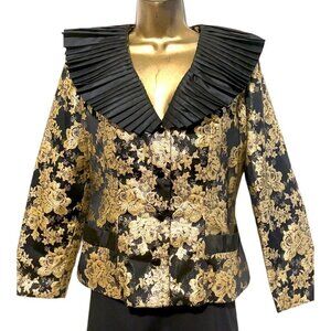 Vintage Gold Brocade Jacket 8 Ruffled Poet Pirate Prince Clown Party Drag