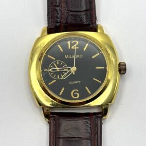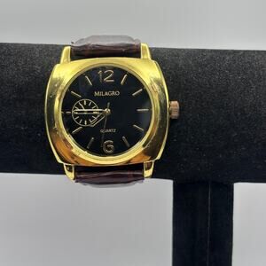 Vintage Gold & Brown Men's Milagro Watch. Fully functional with brand new batteries. Fits 7 1/2 in wrist or near