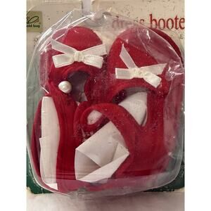 The Vintage Gold Bug Holiday Favorites Red Dress Bootees in size 0-3m are stylish and festive outfits perfect for the holiday season. Made by the brand Gold Bug, these red and white pearl boots with a touch of metal theme make a charming addition to any little girl's wardrobe. The dress and bootees set is ideal for holiday occasions, adding a touch of sparkle and fun to any little one's outfit.