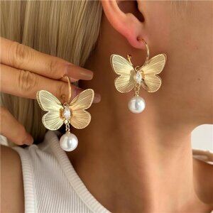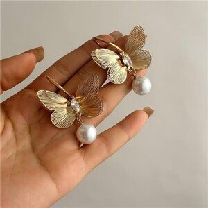 #ButterflyEarrings #VintageJewelry #GoldEarrings #StatementEarrings #PearlAccent #DangleEarrings #NatureInspired #WomenAccessories #ElegantStyle #GiftForHer