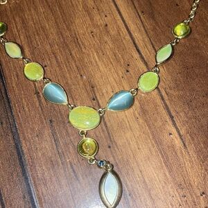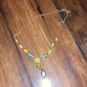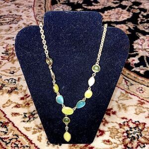 Vintage Gold Chain Gem Stone Blue Yellow and Green Necklace