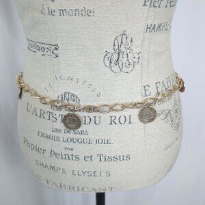 Vintage 1990s unbranded gold-tone chain belt with coin medallion details