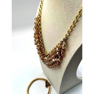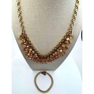 Elevate your look with this vintage jewelry set. The gold chain necklace, adorned with dazzling beads, pairs perfectly with a matching bracelet.