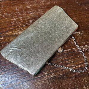 Vintage Gold Clutch Purse With Chain Strap Textured Metallic Finish & Crystal Cl
