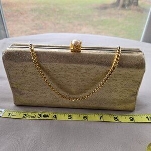 Vintage Gold Clutch Purse with Chain Strap Classic Evening Party