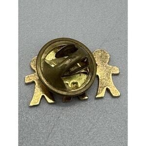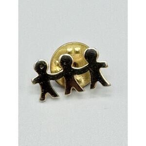 Vintage Gold Colored Three Children Holding Hands Lapel Pin.