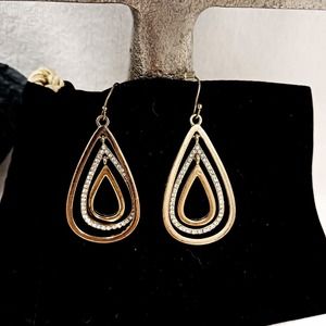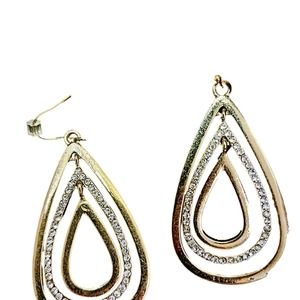 Vintage Gold tone Concentric Simulated Diamonds Teardrop Earrings 1.5 inch Pierced