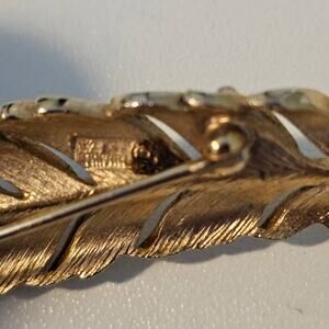 Vintage Gold Crown Trifari Feather Brooch Pin Signed