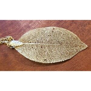 Vintage Gold Dipped Rose Petal Pendant On 32" Goldtone Chain