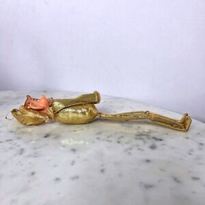 Adorable vintage gold lame elf shelf sitter figurine, a charming piece perfect for adding a touch of retro holiday cheer to your decor.