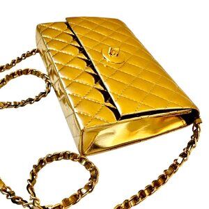 Vintage Gold Faux Patent Leather Crossbody Handbag Padded Flap Turn Lock