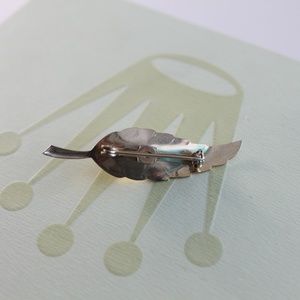 Gold stamped metal feather with a faux pearl mounted on the front. Great gift for any occasion or age.