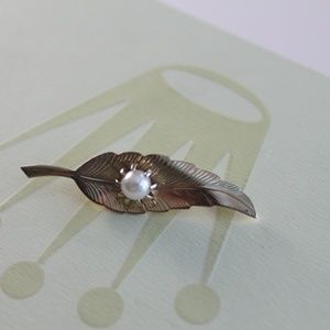 Vintage Gold Feather and Pearl Costume Pin