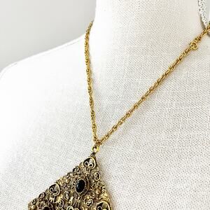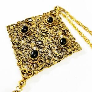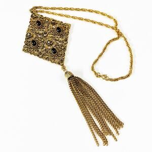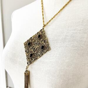Vintage Gold Filagree Diamond Necklace with Chain Tassel