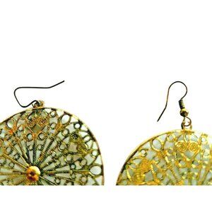 Vintage Gold Filigree Dreamcatcher Dangle Earrings With Bead & Chain Fringe A250