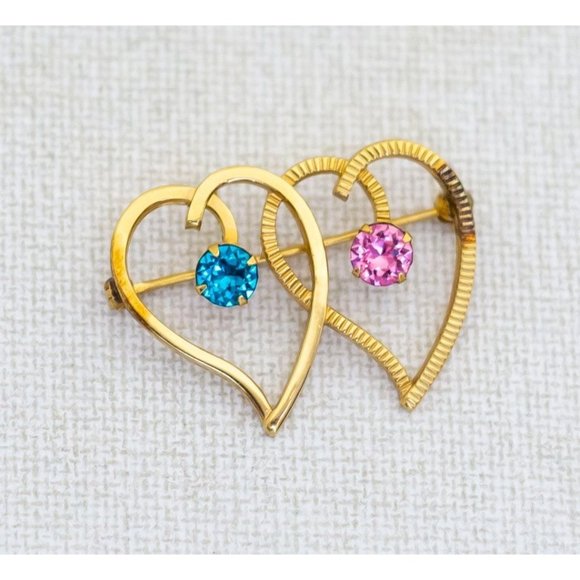 Vintage Gold Filled Hearts Pair Brooch, A14