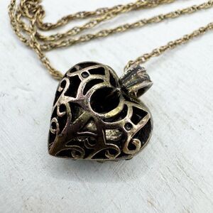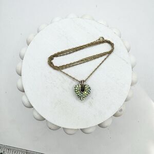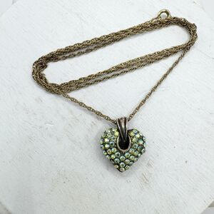 Vintage Gold Filled Pave Aurora Borealis Rhinestone Puffy Heart Pendant Necklace
