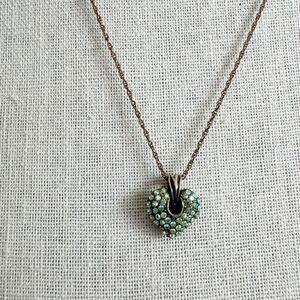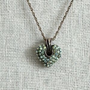 Blueish green aurora Borealis AB rhinestones cover the front of the puffy heart