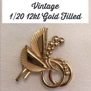 Vintage Gold Filled Pendant / Pin Modern Floral