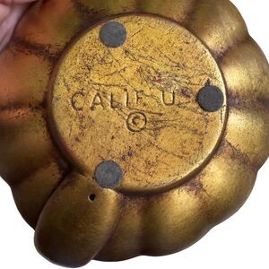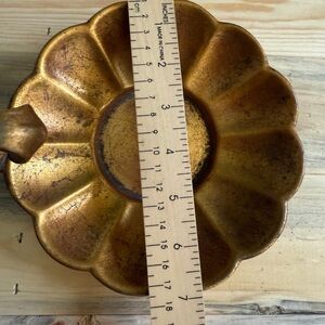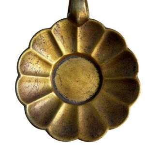 Vintage gold leaf floral dish with handle — perfect as a candle holder, trinket catchall, or decorative accent. Mid-century modern vibes with gorgeous patina and aged detailing.
