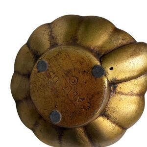 Vintage Gold Floral Candle Holder Dish | MCM Freeman McFarlin Style