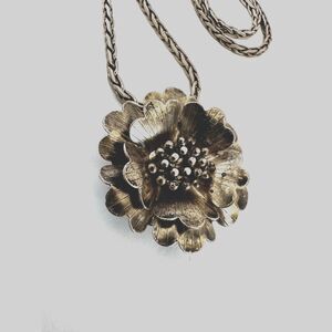 Elegant floral pendant. Intricate chain design. Perfect for any occasion.