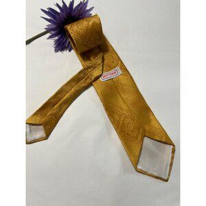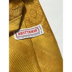 This vintage Brittania tie tells a tale of elegance and charm with its intricate gold floral patterns. Crafted from imported polyester, it adds a touch of timeless sophistication to formal attire. Measuring 54 inches, it’s a stunning accessory that bridges classic design with a bold golden hue.
