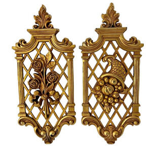 Vintage Gold Floral Wall Hanging Decor Hollywood Regency Spring Fall Retro
