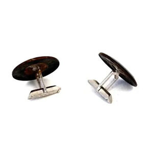 Vintage Gold Frame Retro Art Deco MCM Red White & Blue Swirl Men's Cuff Links