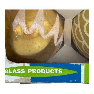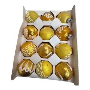 Vintage Gold Glass Christmas Ornaments Set Of 12 Coby Glass Handcrafted Glitter