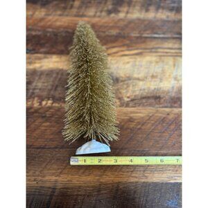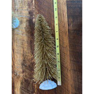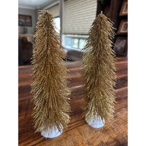 Vintage Gold Glitter Bottle Brush Christmas Trees 8" Tall Set Of 2 Holiday Decor