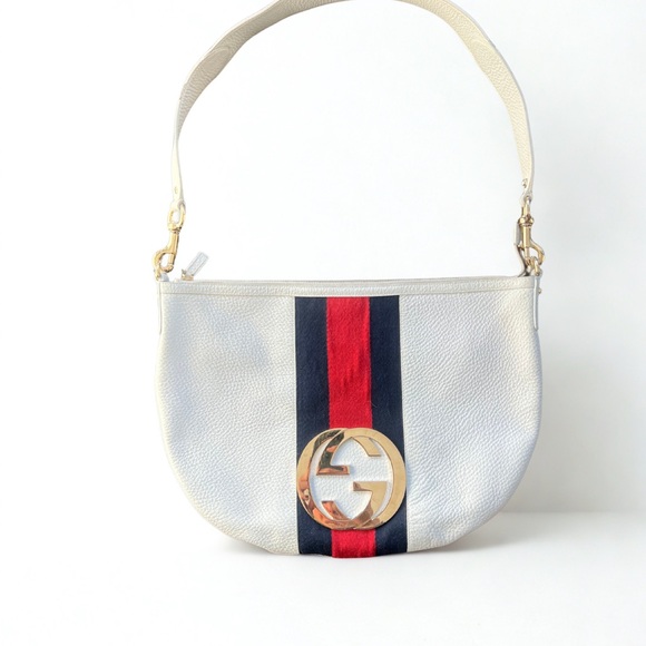 Vintage Gold! Gucci Cream Leather Shoulder (or crossbody) w/Red and Blue Stripe