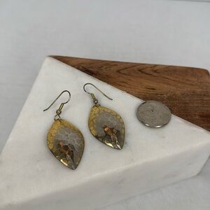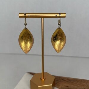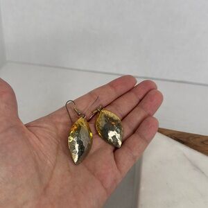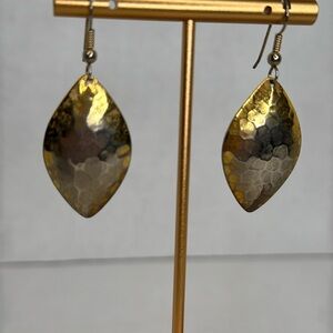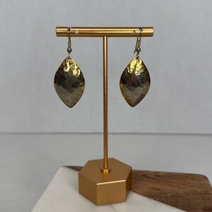 These elegant gold hammered earrings add a touch of sophistication to any outfit. Perfect for both casual and formal occasions.