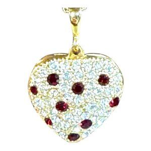 Vintage Gold Heart Locket Necklace With Ruby Red and Clear Rhinestones Stones