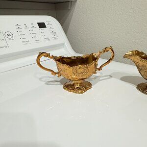 Vintage Gold Holiday Imports Crown Gold Heavy Sugar & Creamer