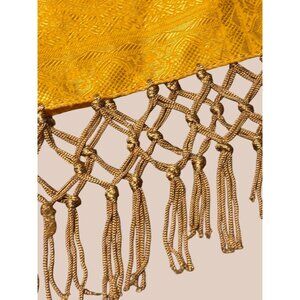Vintage Gold Jacquard Scarf With Fringe Tassels 22" X 60"
