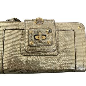 Vintage Gold Juicy Couture Wallet. Preowned Good Condition. Measures Approximately - 7.5" x 4.5". Some of the pictures make it look more silver but it is GOLD with Gold hardware. It does not have any other straps. Wallet only. Any questions, please ask. Your wallet will be packed with care. Thanks for looking and please check out my other listings. Bundle and save.