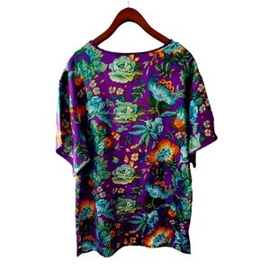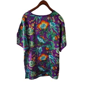 Vintage Gold Label Tropical Print Polyester Night Shirt Night Gown Size Small