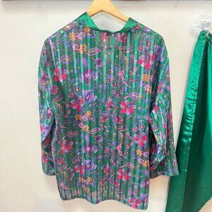 Vintage Gold Label Victorias Secret Green Floral Satin Pajama Set Medium