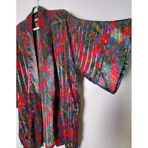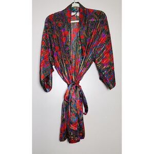Vintage Gold Label Victoria's Secret Short Robe. Women's Large. Rose, Floral, Paisley, Jewel Tones, Regencycore.